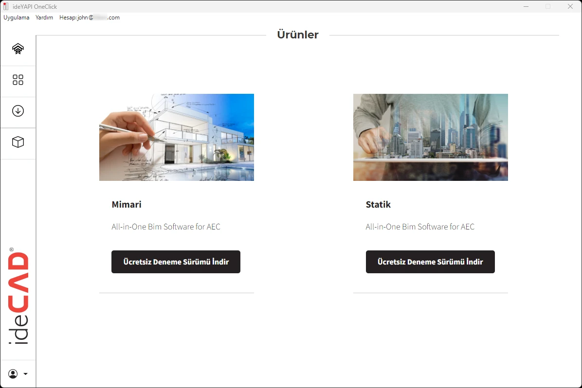 ideYAPI OneClick’i indirmediyseniz, indirme adımları için buraya tıklayınız.