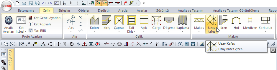 Çelik menüsü altında bulunan Uzay Kafes ikonunu farenin sol tuşu ile tıklayınız.