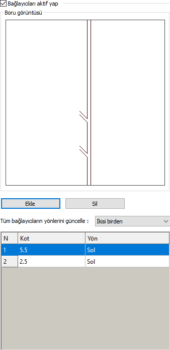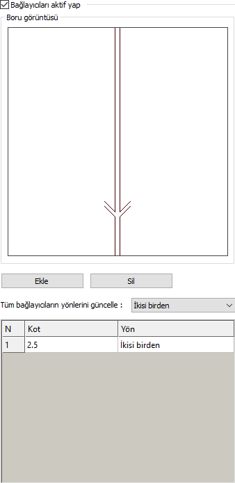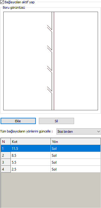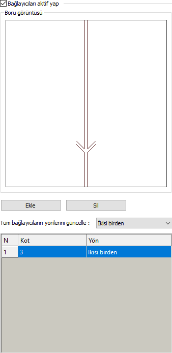 Bağlayıcı tablosu ![]() Kot ve yön değerleri verilir. İstenilen kot değeri verilip yön seçilebilir. |
