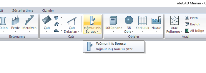 Yağmur İniş Borusu komutu ile yağmur iniş borusu oluşturulur.