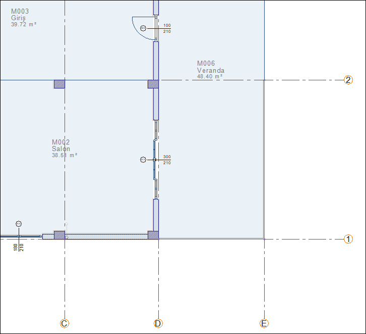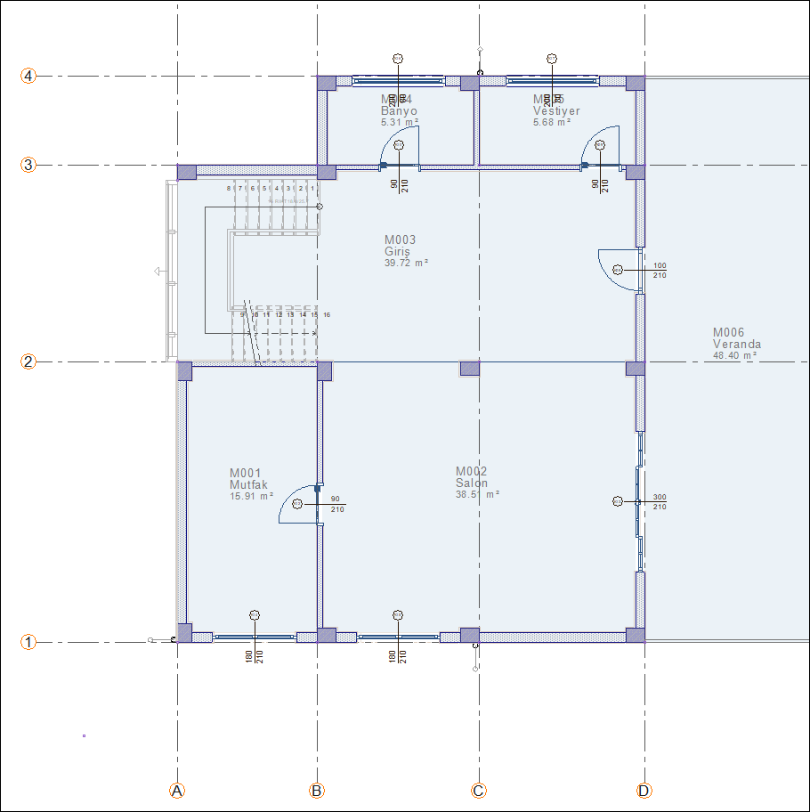 A-1 ve C-4 aks kesişimlerine yağmur iniş boruları yerleştirin.