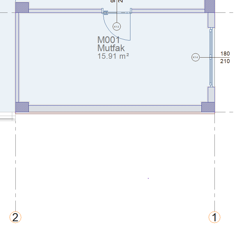 Çizim alanında dış cephe elemanının 1. noktasını farenin sol tuşu ile tıklayarak belirleyin.