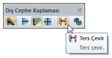 Dış cephe kaplaması elemanının bir yönü dış cephe, diğer yönü iç cephedir. Bu aşamada toolbardan Ters Çevir ikonunu tıklarsanız ya da klavyeden boşluk tuşuna basarsanız, elemanın dış yönünü içe, iç yönünü dışa çevirirsiniz. Çizerken, çizim hattı üzerinde var olan ok yönü, elemanın dış cephesini göstermektedir.