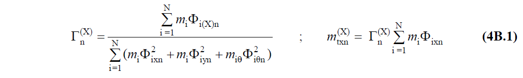 TBDY Denklem 4B.1 'de gösterilen Φi(X)n i’inci katta (X) deprem doğrultusunda n ’inci doğal titreşim mod şekli genliği anlamına gelmektedir. Ancak sonlu eleman çözümünde kütleler düğüm noktalarında toplantığı için burada Φi(X)n i 'inci düğüm noktası genliği olarak düşünülebilir. Bu durumda mi , i ’inci düğüm noktasının toplam kütlesidir.