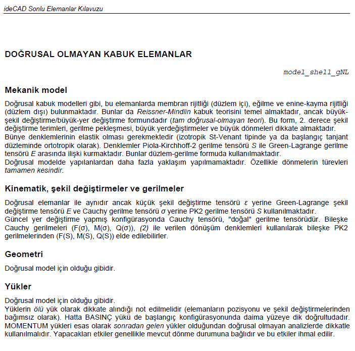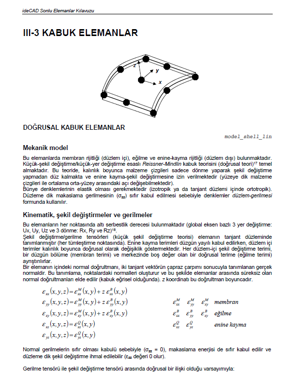 ideCAD Sonlu Elemanlar Kılavuzu 57.nci sayfalardan sonraki sayfalardan alınmıştır.