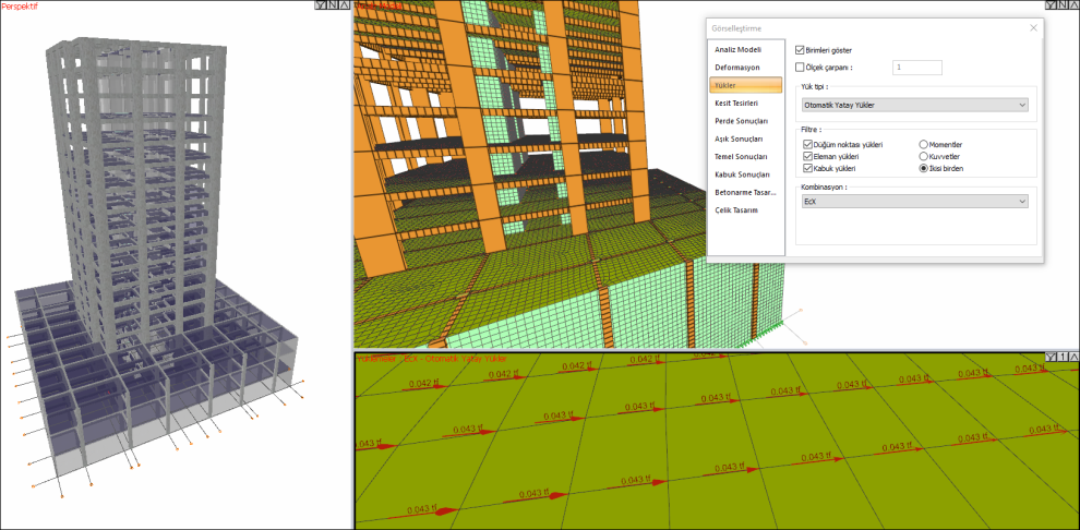 Rijit diyafram ile yarı rijit diyafram modellerini karşılaştırdığımızda modellerin orta bölgesinde farklı deplasman değerleri görülmektedir.