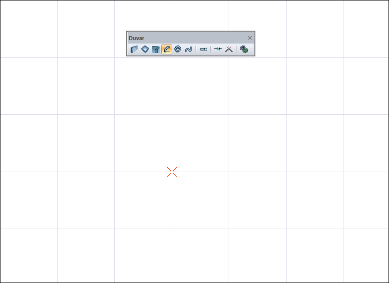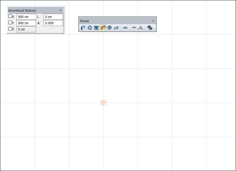 Farenin sol tuşu ile çizim alanında yay duvar parçasının merkezinin belirlenmesi ![]() |