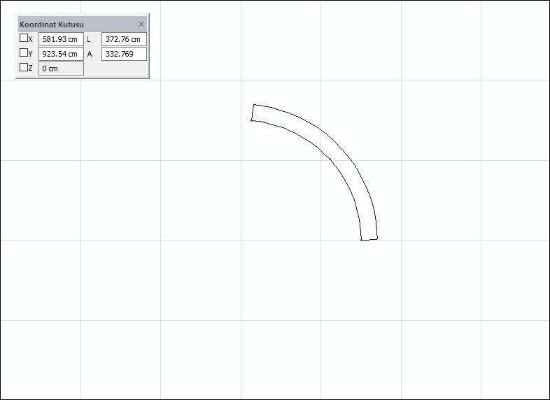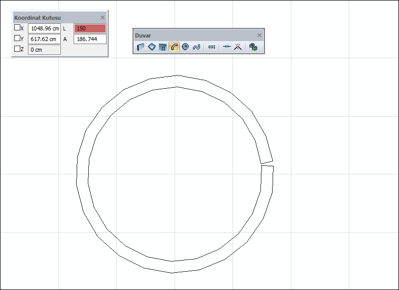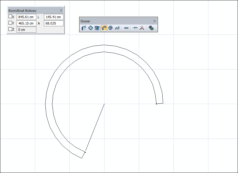 Çizim alanına tıklanarak yay duvarın oluşturulması ![]() ![]() |