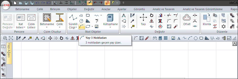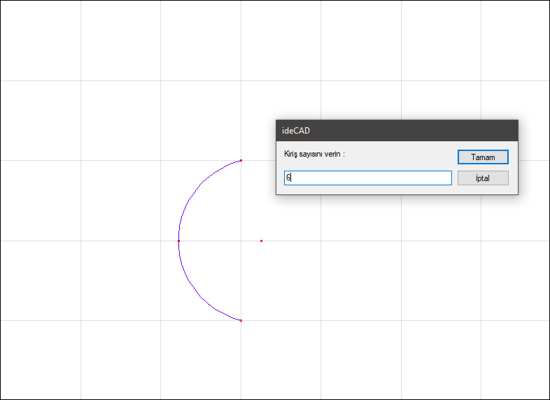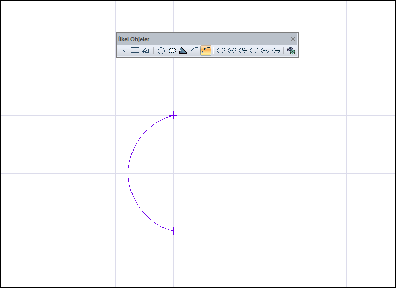 Farenizin hareketiyle beraber yayınız değişecektir. Farenizin sol tuşu ile 3. noktaya tıklayarak yay çizimini tamamlayın.
