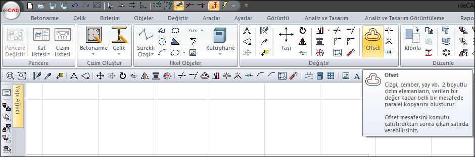 Poligon kolonunuzun diğer kenarı için ribbon menüden ofset ikonunu tıklayın.