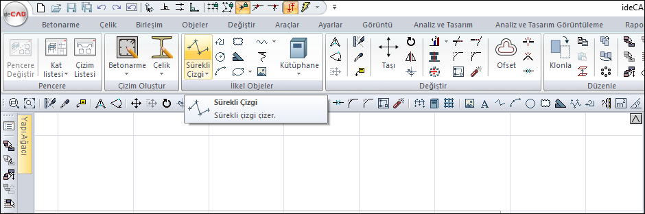 Ribbon menüden sürekli çizgi ikonunu tıklayın.