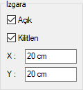 Tasarım penceresi ızgara bölümünde yer alan x ve değerlerine göre ızgaralar arasındaki mesafeler 20cm’dir. Bu değerleri isterseniz değiştirebilirsiniz. Tasarım esnasında ızgaralardan yaralanacağımız için bu değerler önemlidir.