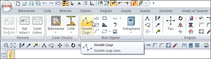 Ribbon menüden sürekli çizgi ikonunu tıklayın.
