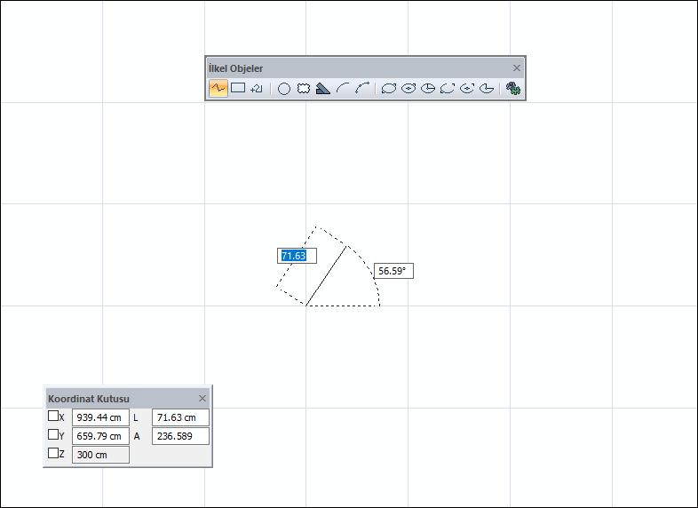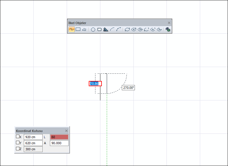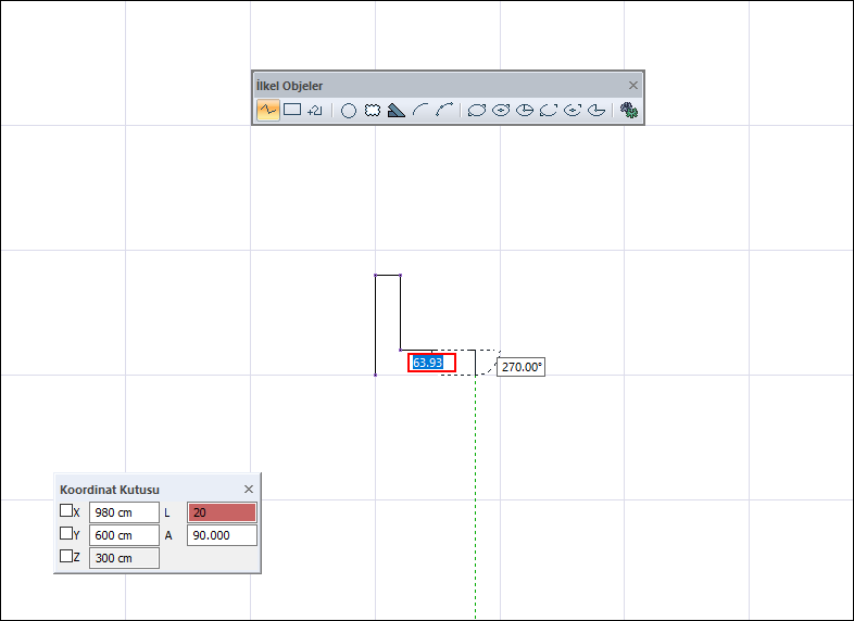 Çizim alanında herhangi bir yeri sol tuş ile tıklayın. Çizginin ilk noktası belirlenecektir.
