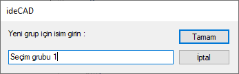 Yeni Seçim Grubu Oluştur komutuyla objeler seçilerek seçim grubu oluşturulur. Daha sonra istenildiğinde tek seferde o seçim grubuna ait objeler seçilir.