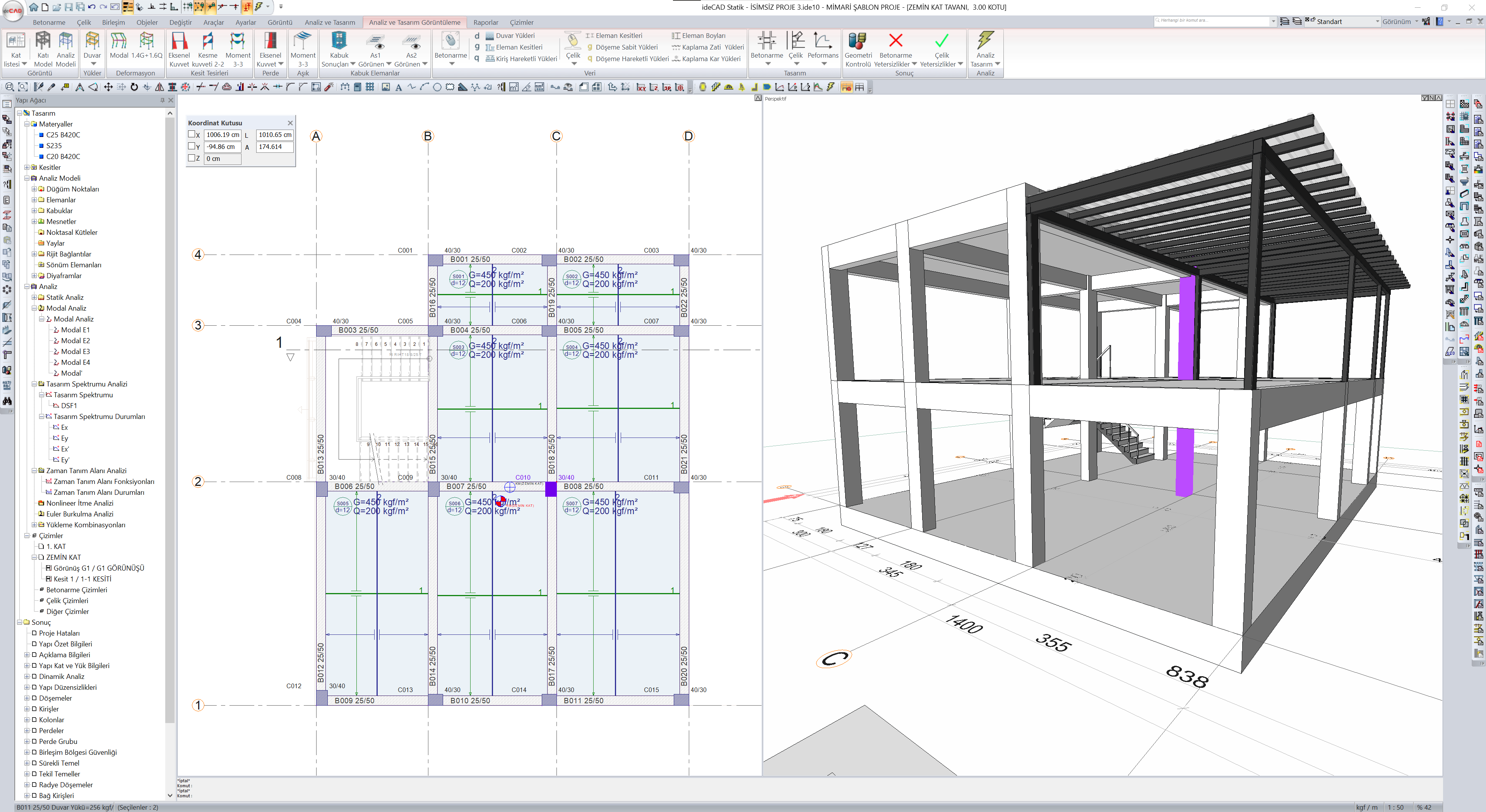 ideCAD Mimari ile hazırlanmış proje ideCAD Statik ile açılmıştır. Analiz+Tasarım yaparak görselleştirme olanakları ile yetersizlikleri tespit edip gerekli müdahaleyi yapabilirsiniz. |