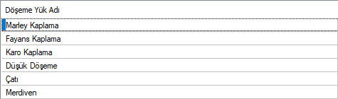 | Döşeme yük adı  Döşeme yükleri listelenir. |