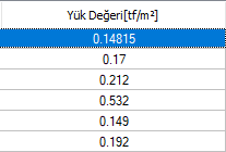| Yük değeri  Döşeme yük değerleri listelenir. |