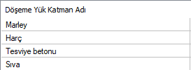 | Döşeme yük katman adı  Seçilen döşeme yükünün katmanları listelenir. |