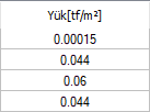 | Yük  Seçilen döşeme yükünün katmanlarına ait birim yükler listelenir |