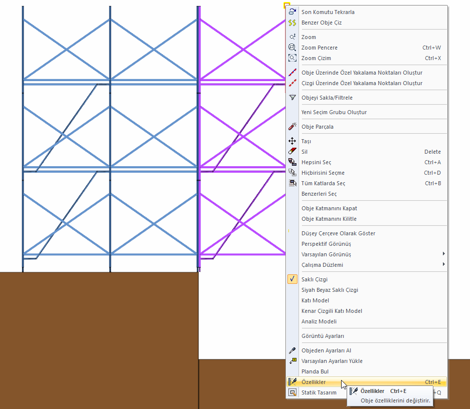 Ayarlarını düzenleyeceğiniz iskeleyi seçin ve farenin sağ tuşuna tıklayın. Açılan sağ tuş menüden Özellikler satırını tıklayın.