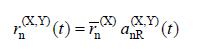 anR(X,Y)(t) = Aynı anda (X) ve (Y) deprem yer hareketi bileşenlerinin ortak etkisi altında n’inci titreşim moduna ait zamana bağlı azaltılmış doğrusal modal sözde-ivme [m/s2]