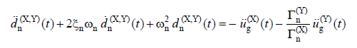 Doğrusal modal yerdeğiştirme, dn(X,Y)(t) , aynı anda (X) ve (Y) deprem yer hareketi bileşenlerinin ortak etkisi altında n’inci moda ait modal tek serbestlik dereceli sistem’in aşağıda verilen hareket denkleminin zaman tanım alanında doğrusal çözümünden elde edilir: