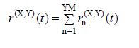 r(X,Y)(t) = Aynı anda (X) ve (Y) deprem yer hareketi bileşenlerinin ortak etkisi altında herhangi bir davranış büyüklüğüne (yerdeğiştirme, göreli kat ötelemesi, iç kuvvet bileşeni) karşı gelen tipik davranış büyüklüğü’nün zamana göre değişimi