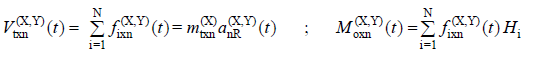 (X) ve (Y) doğrultularında tanımlanan depremin etkisi altında tipik bir n’inci titreşim modunda, taşıyıcı sistemin x ekseni doğrultusunda modal taban kesme kuvveti ve buna karşı gelen taban devrilme momenti’nin zamana göre değişimleri Vtxn(X,Y) (t) ve Moxn(X,Y) (t) aşağıdaki denklemler ile hesaplanır: